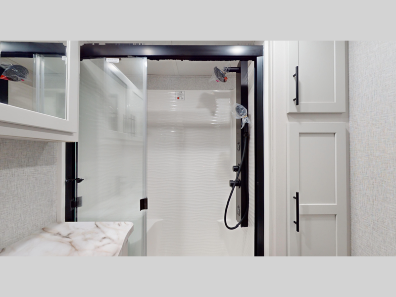 With 8-foot floor to ceiling heights, residential style appliances, and raised panel cabinetry, you can see how they will feel like home. There is an abundance of storage for you to bring along all of your essentials, create the perfect outdoor oasis with the patio awning, and rinse any unwanted dirt off with the outside faucet before heading inside. Each is designed with an enclosed underbelly, severe weather welded mounts, a fiberglass roof and floor insulation with radiant tech foil, plus rain gutters along the entire roof line to keep water away from your unit.