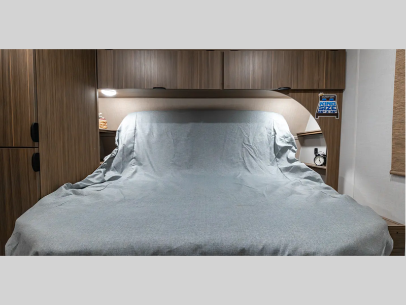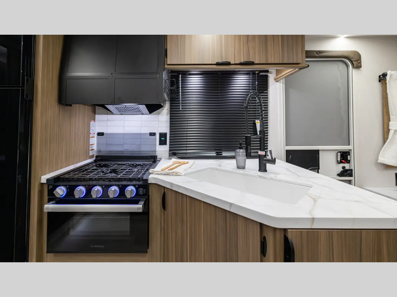 There are stylish window shades inside, along with TFL cabinet doors, upgraded backsplash, plus elegant curtain rods and curtains to make you feel more at home. You will also appreciate some of the best-in-class features such as, an enclosed Accessibelly for added protection, exterior accent lighting, a powder coated I-beam frame, and seamless holding tanks.