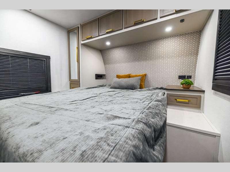 Sleeps 2 Slides 1 Length 24 ft Ext Width 8 ft Ext Height 10 ft 10 in Hitch Weight 785 lbs Dry Weight 5403 lbs Cargo Capacity 2382 lbs Fresh Water Capacity 49 gals Grey Water Capacity 62 gals Black Water Capacity 32 gals Available Beds Queen with Versa-Tilt Refrigerator Type 12V Black Refrigerator Size 10 cu ft Cooktop Burners 3 Shower Size 30" x 36" Number of Awnings 1 Water Heater Type Tankless AC BTU 15000 btu TV Info LR 40" LED Smart TV Awning Info 14' with LED Lights Axle Count 2 Shower Type Walk-In Shower Similar Floorplans