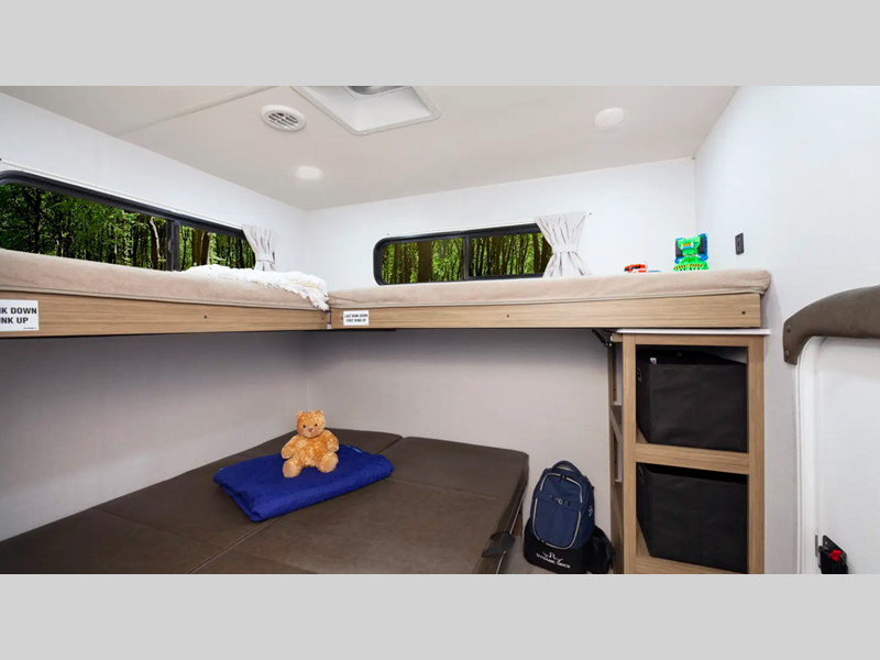 All models are built with a sturdy construction and packed full of amenities to make life at the campsite easier. Full bath and kitchen amenities come standard, along with comfortable sleeping space and plenty of storage for all your belongings.