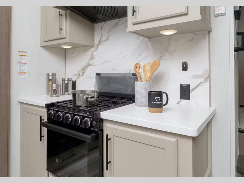 Keystone includes excellent innovation on each brand it produces, and the Cougar Half-Ton is no exception. You'll find a Climate Guard protection package, HyperDeck flooring, and HyperCore composite wall construction that is durable, water resistant and lighter. You'll love the residential, shaker style hardwood cabinet doors and drawers inside, along with blackout roller shades throughout, dimmable lights in select areas, plus many more comforts.